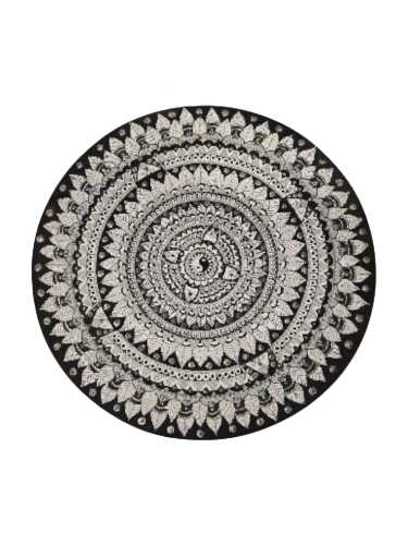 Merkezden dışa doğru yayılan tekrar eden desenler, yaşamın döngüsel yapısını ve sürekliliğini vurgular. Mandalanın simetrik kurgusu, gözün ritmik bir şekilde merkezde toplanmasını sağlayarak odaklanma ve görsel farkındalığı destekler. Siyah zemin üzerindeki açık tonlu detaylar, kontrast algısını güçlendirerek zihinsel netlik hissi oluşturur.