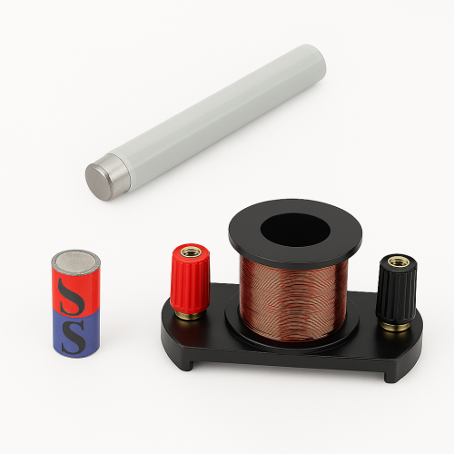 Bu sağlam hava çekirdekli bakır solenoid, harici bir manyetik alan gerektiren herhangi bir sınıf deneyi için mükemmeldir. Yalıtılmış bakır tel, plastik bir bobinin etrafına sarılır ve solenoidin uç plakalarına pirinç bağlama direkleri takılır. Öğrenciler, geniş bir akım aralığında elektrik ve manyetizma arasındaki ilişkileri ölçebilir.