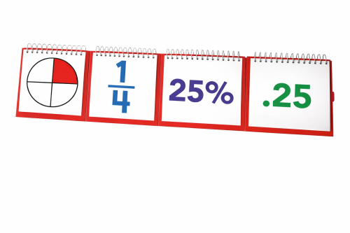- Flip standın bir tarafında farklı kesir örnekleri diğer tarafında denklik (kesirler, ondalık sayılar, yüzdeler) vardır.